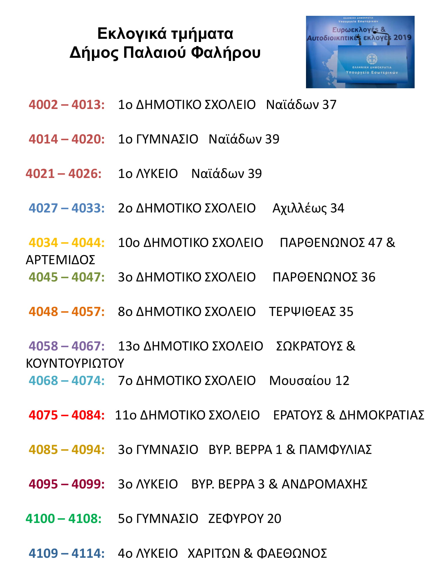 Τα εκλογικά τμήματα στο Δήμο Π. Φαλήρου είναι 113.
