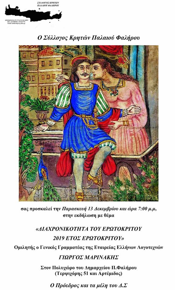 Η διαχρονικότητα του Ερωτόκριτου από το Σύλλογο Κρητών Π. Φαλήρου