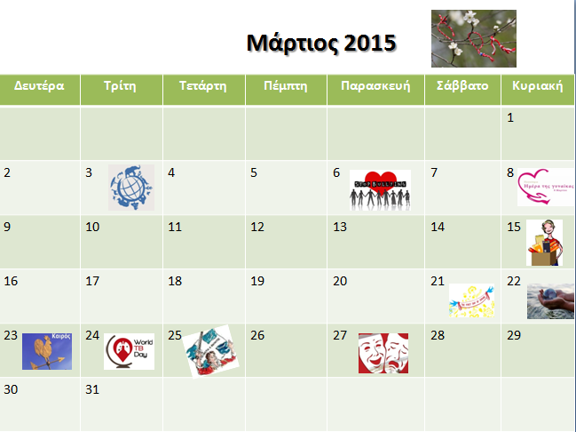 21 Μαρτίου       Η πρώτη ημέρα της Άνοιξης (εαρινή ισημερία)