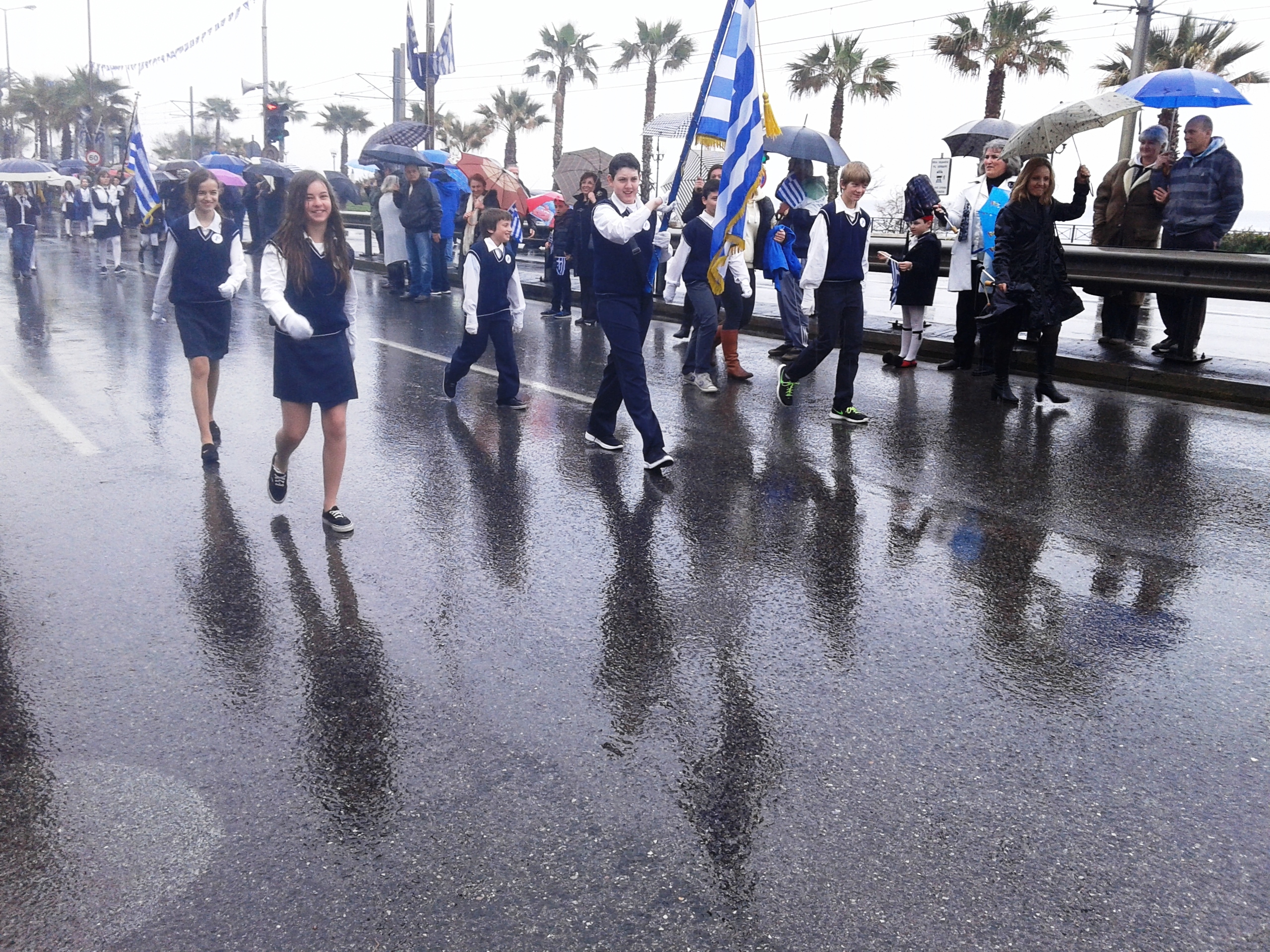 Με απόφαση του Δημάρχου, λόγω της βροχής, παρέλασαν μόνο οι σημαιοφόροι των σχολείων και των αθλητικών σωματείων της πόλης μας.