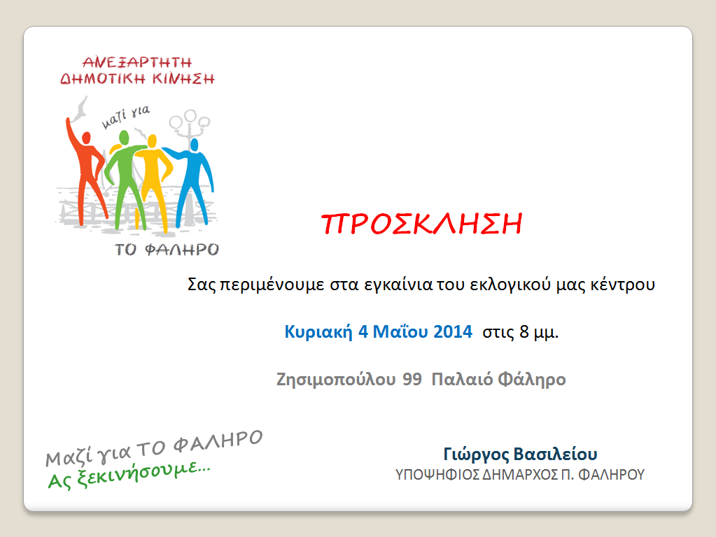Πρόσκληση Εγκαινίων Εκλογικού Κέντρου